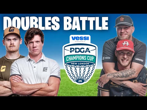 Watch the intense doubles battle between Ezra Aderhold, Goose, and the Robinson Brothers in this back 9 disc golf showdown with great shots, comebacks, and thrilling moments.